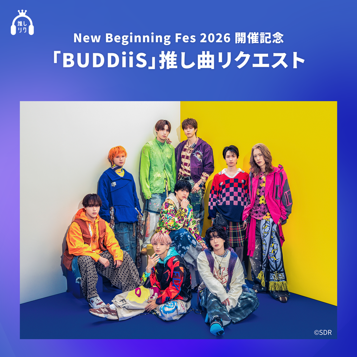 『New Beginning Fes 2026』開催記念リクエスト企画を実施中! あなたの「BUDDiiS推し曲」を教えてください! 心を動かされた一曲や、ライブで忘れられない曲など、思い出やエピソードを添えてぜひリクエストに参加&シェアしてください。「BUDDiiS」の楽曲にリクエストして、『New Beginning Fes 2026』を当日公演に向けて盛り上げよう!