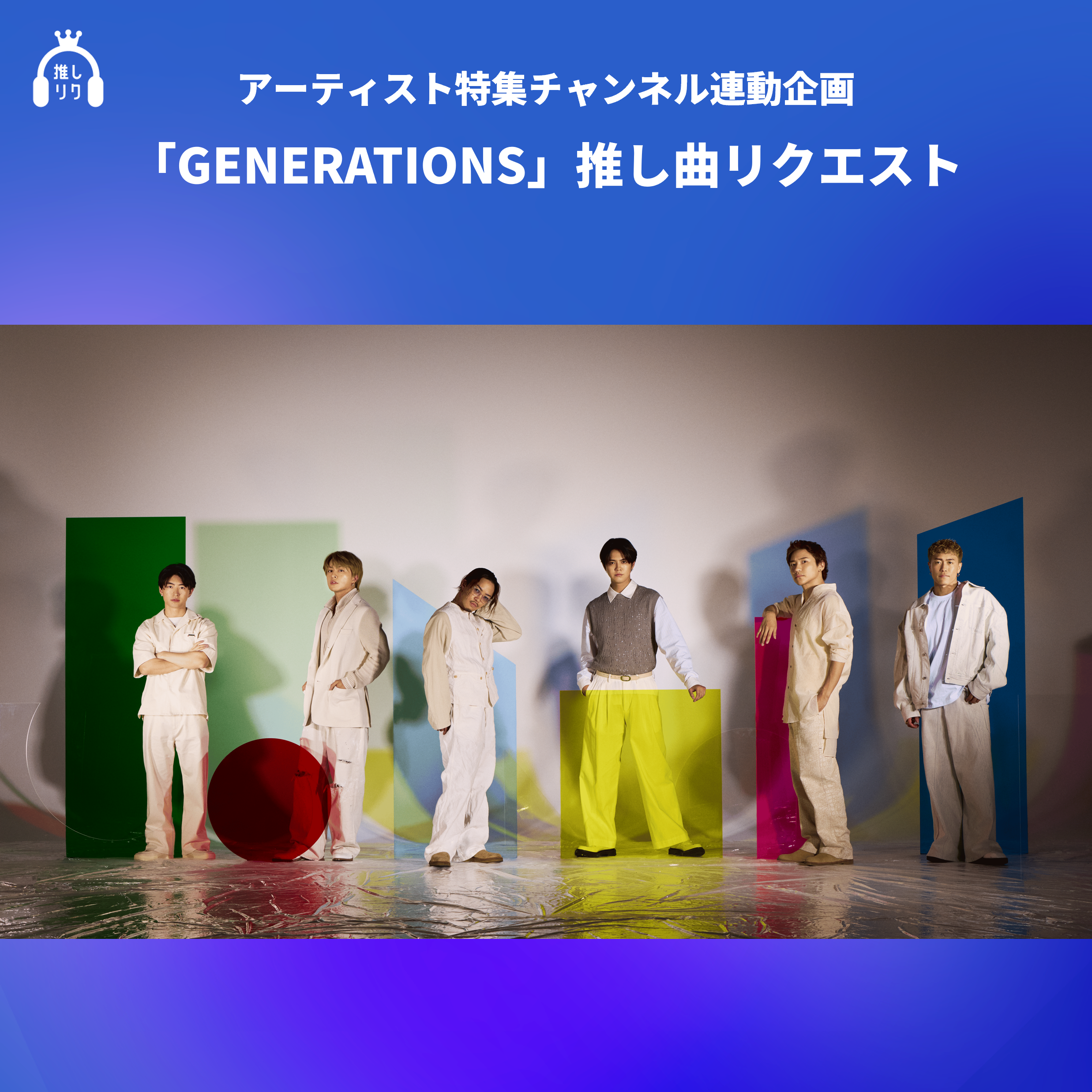 話題のアーティストを1ヶ月にわたり特集する専門チャンネル「アーティスト特集 MONTHLY J-POP」との連動リクエスト企画です。本期間でのリクエスト楽曲は、2026年1月1日(木)~1月31日(土)の期間で、USENの音楽放送チャンネル「アーティスト特集 MONTHLY J-POP」の特集放送内でピックアップしてお届け。チャンネルは全国の街中や店内BGMで放送されます!「GENERATIONS」の思い出の曲や好きな曲をリクエストし、推しへの愛を語り合いましょう!