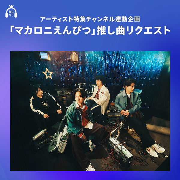 話題のアーティストを1週間にわたり特集する専門チャンネル「アーティスト特集 WEEKLY J-POP」との連動リクエスト企画です。本期間でのリクエスト楽曲は、2025年12月22日(月)~12月28日(日)の期間で、USENの音楽放送チャンネル「アーティスト特集 WEEKLY J-POP」の特集放送内でピックアップしてお届け。チャンネルは全国の街中や店内BGMで放送されます!「マカロニえんぴつ」の思い出の曲や好きな曲をリクエストし、推しへの愛を語り合いましょう!